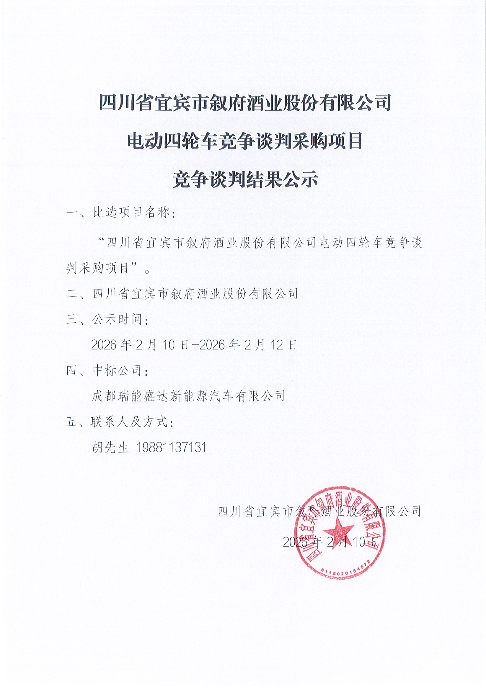 四川省宜賓市敘府酒業(yè)股份有限公司電動四輪車競爭談判采購項(xiàng)目