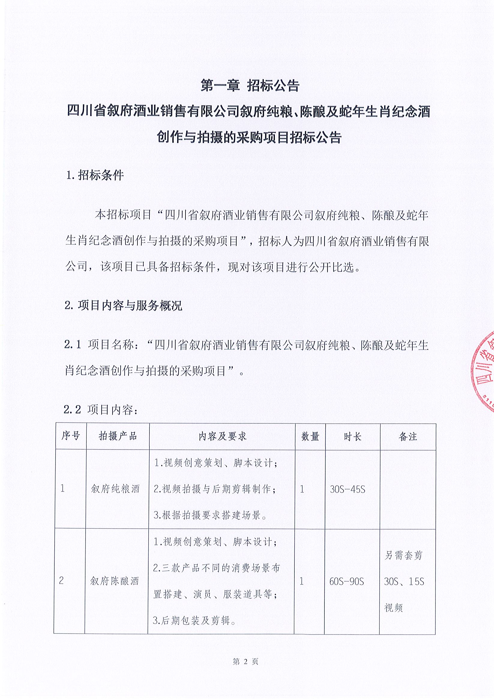 四川省敘府酒業(yè)銷售有限公司敘府純糧、陳釀及蛇年生肖紀念酒創(chuàng)作與拍攝的采購項目比選公示公告