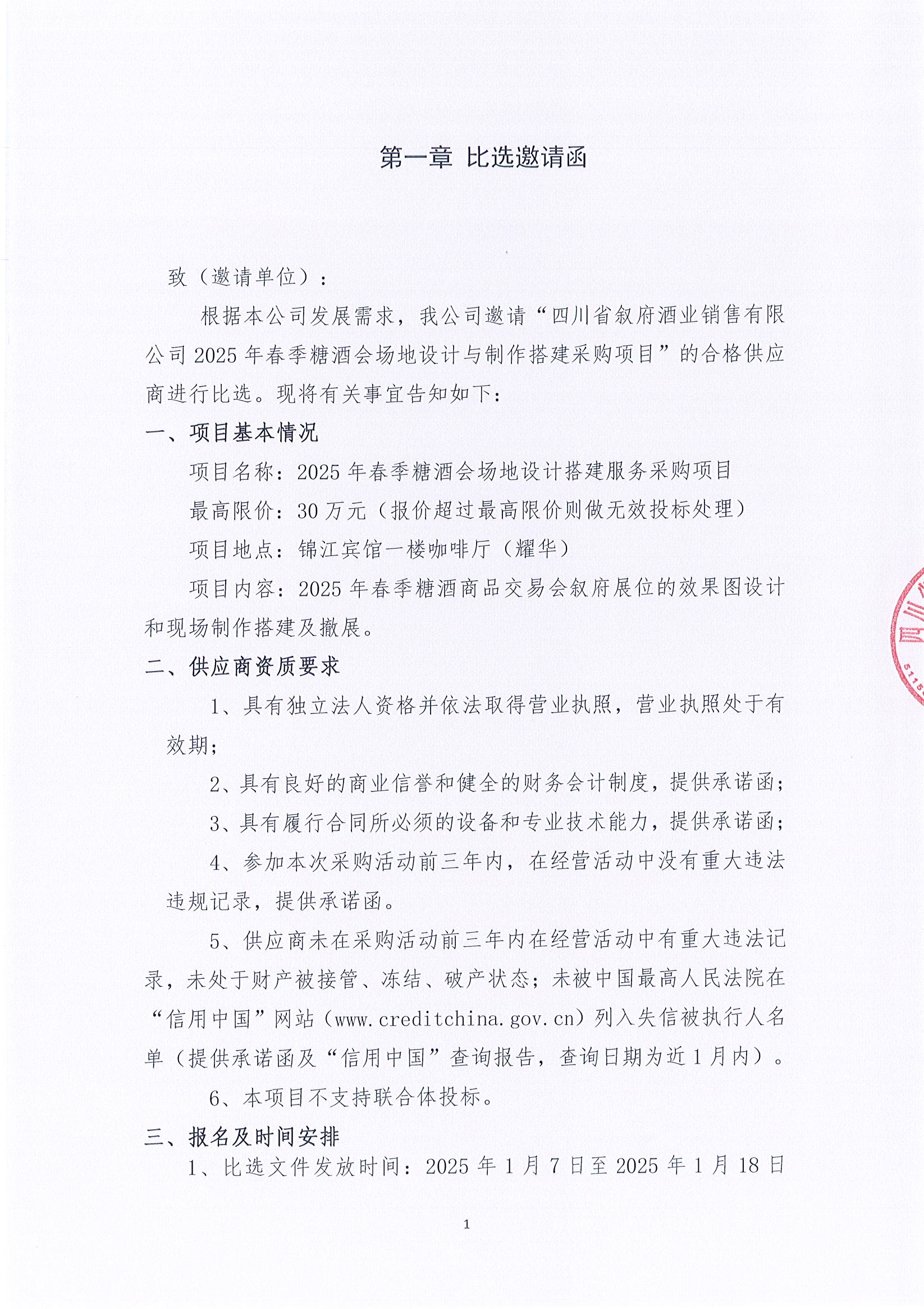 四川省敘府酒業(yè)銷售有限公司2025年春季糖酒會場地設計與制作搭建采購項目比選公示公告