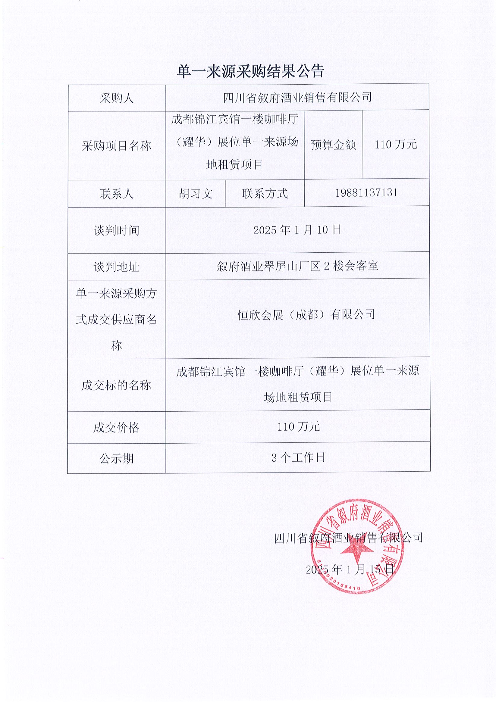 成都錦江賓館一樓咖啡廳(耀華)展位單一來源場地租賃項目單一來源采購公示公告