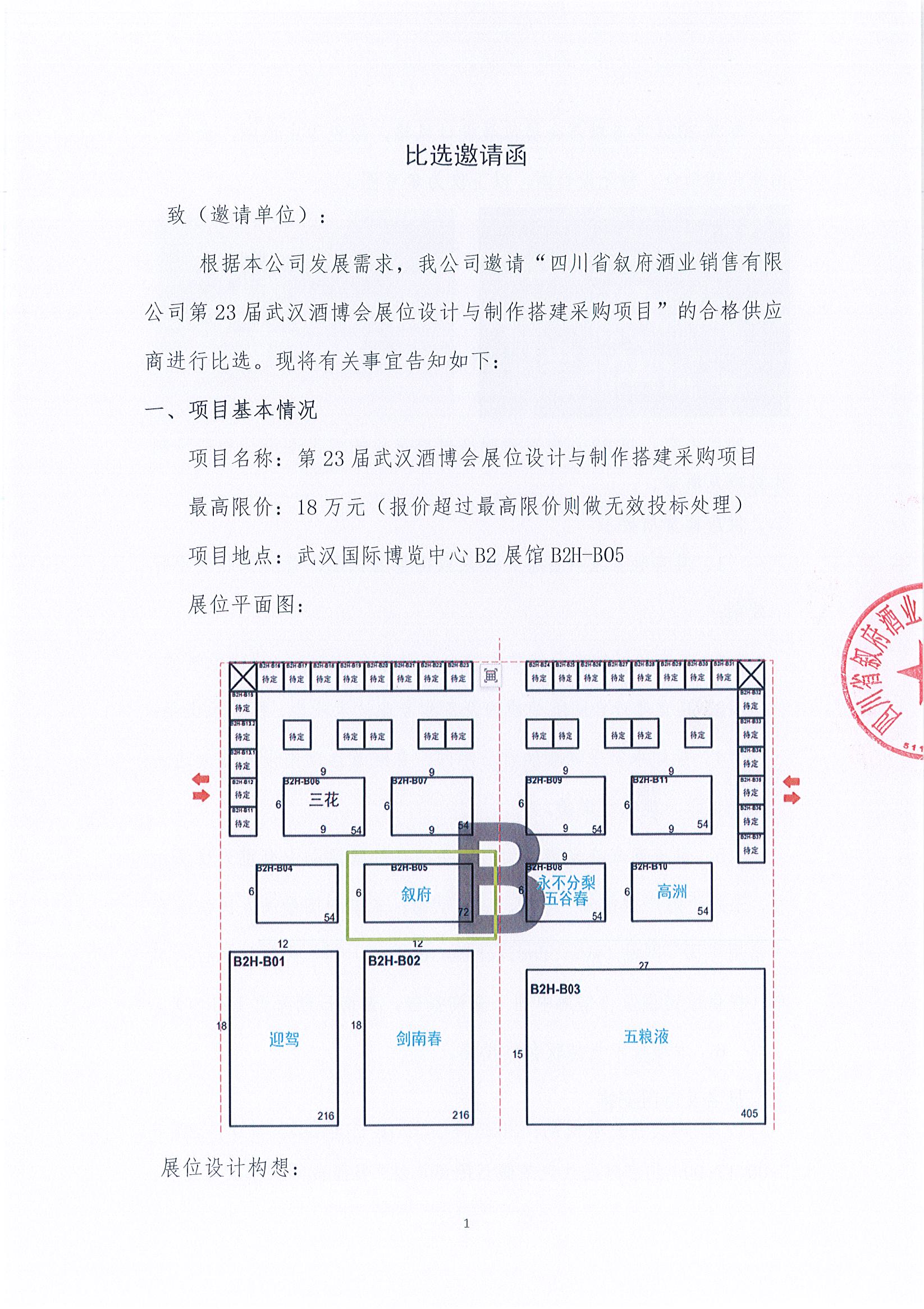 四川省敘府酒業(yè)銷售有限公司第23屆武漢酒博會展位設(shè)計(jì)與制作搭建采購項(xiàng)目招標(biāo)比選公示公告