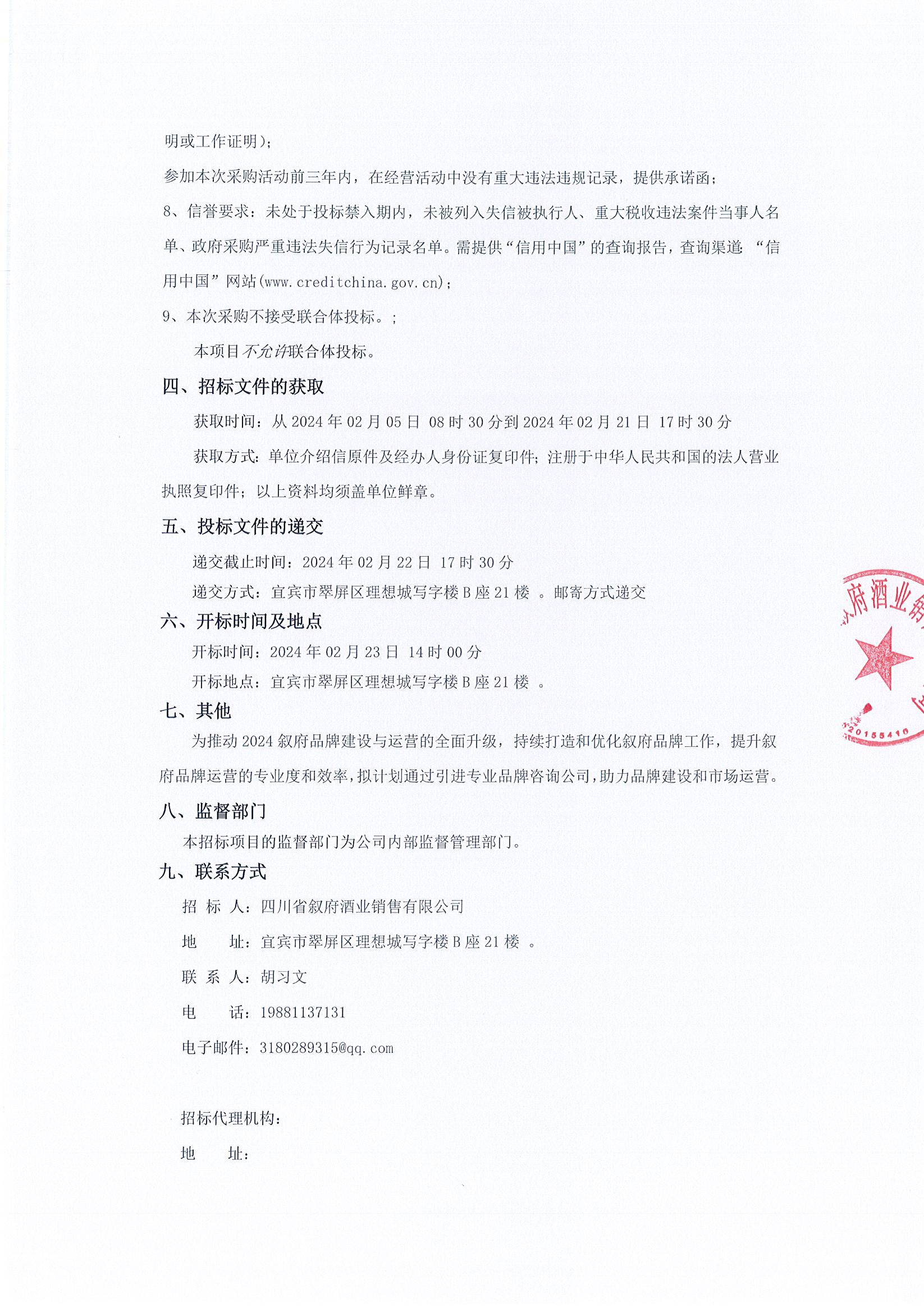 四川省敘府酒業(yè)銷售有限公司2024年春季糖酒會廣告投放項目單一來源采購公告