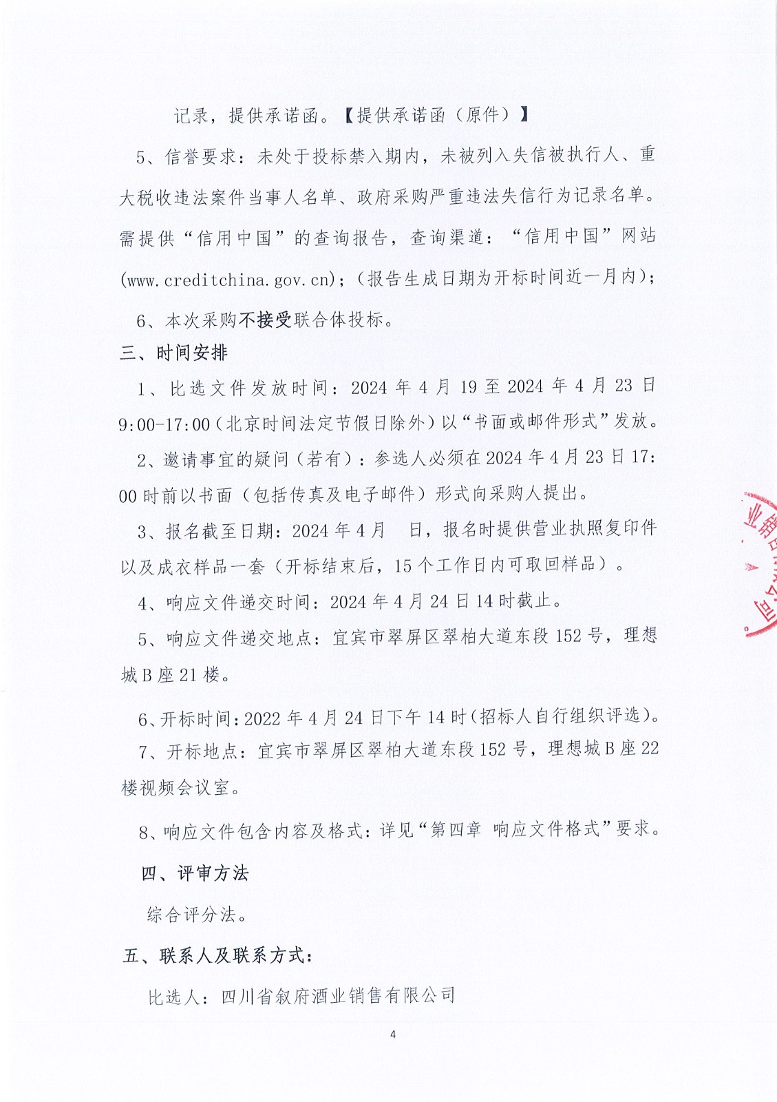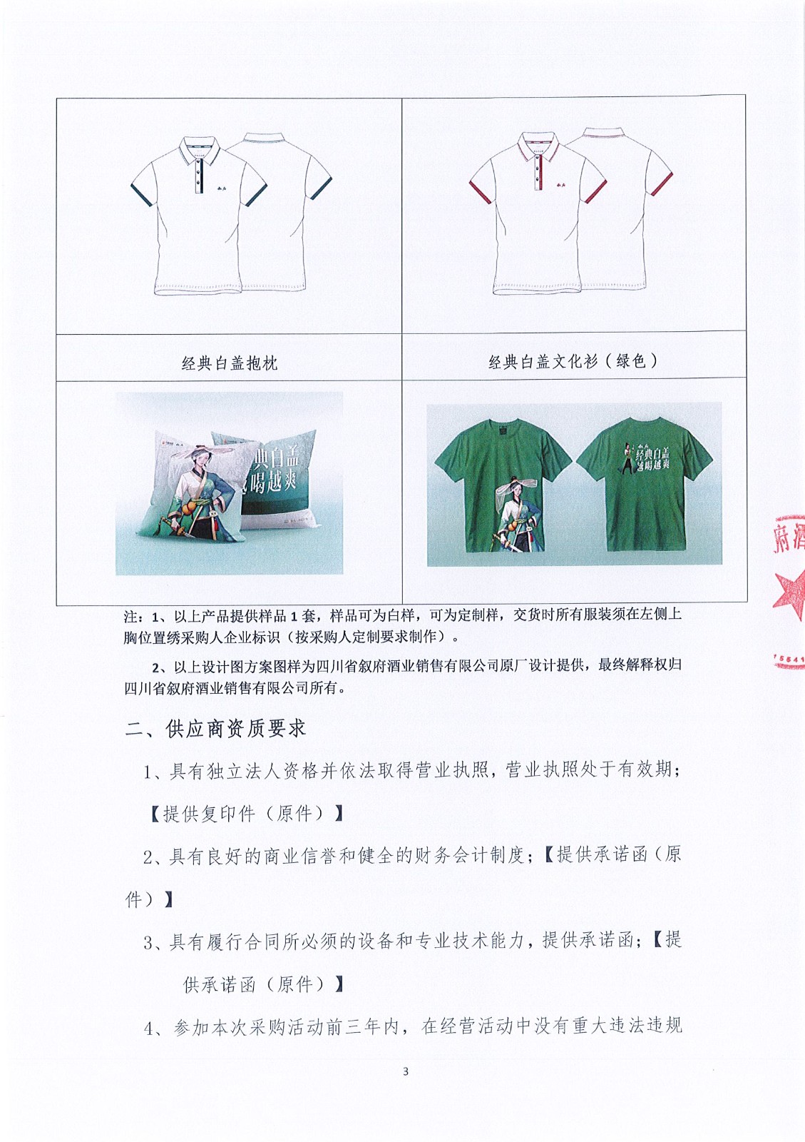 四川省敘府酒業(yè)銷售有限公司品牌文化衫、白蓋專屬類促品物料采購項(xiàng)目比選結(jié)果公示