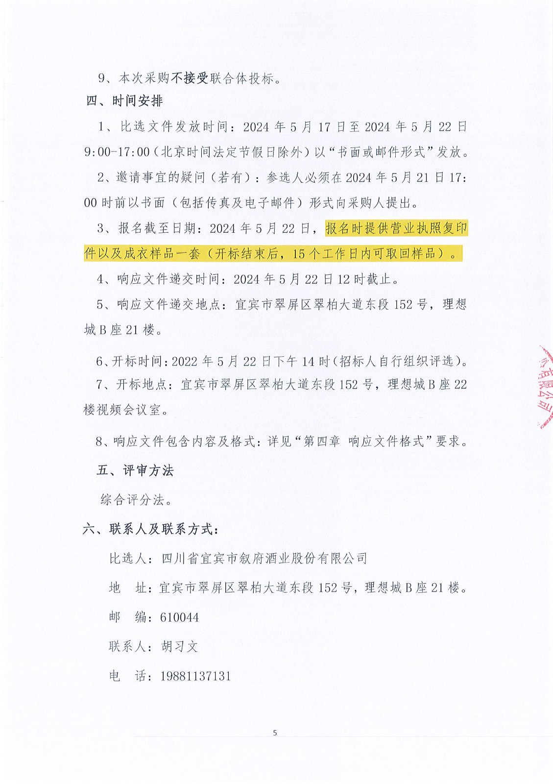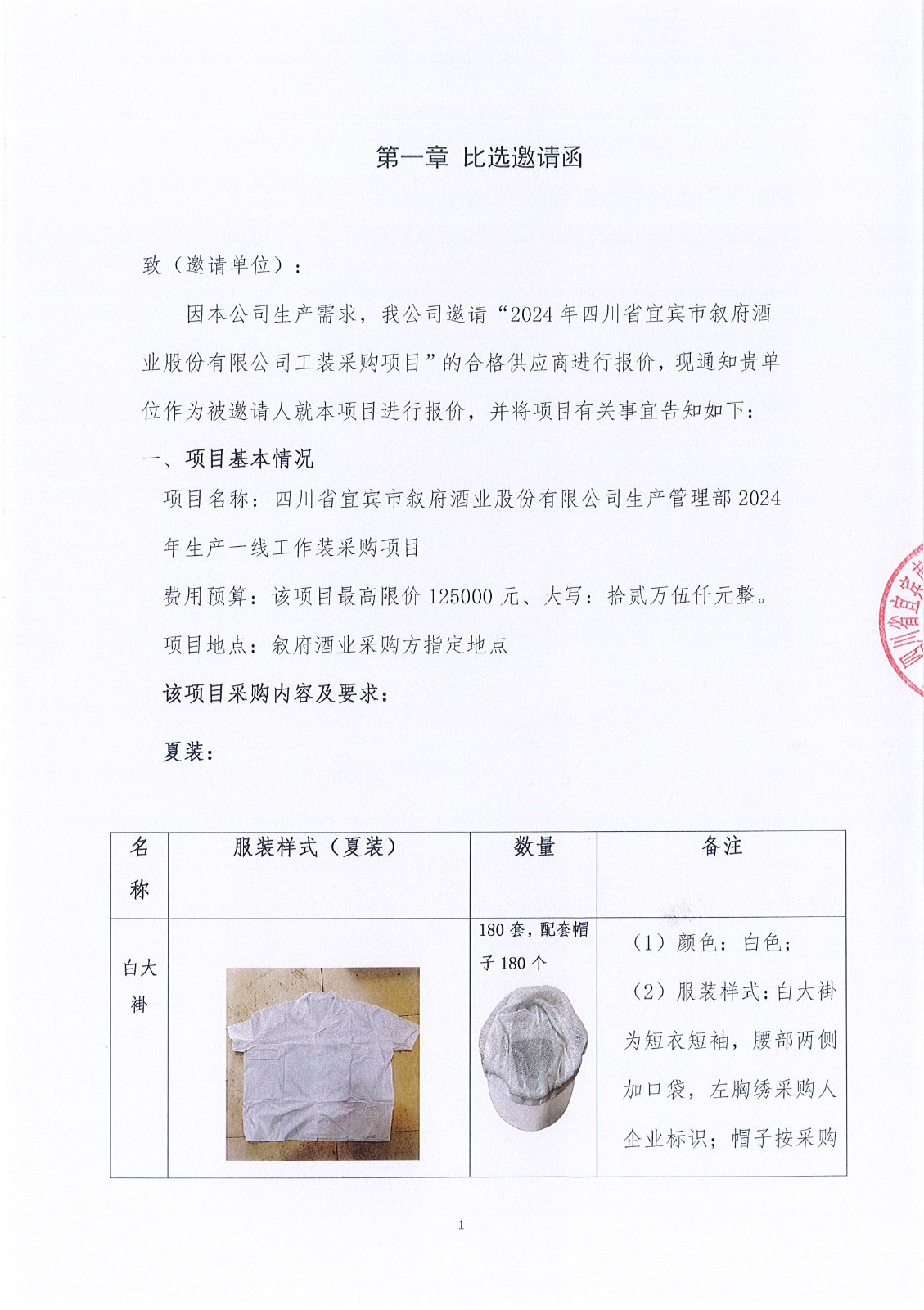 四川省敘府酒業(yè)銷售有限公司品牌文化衫、白蓋專屬類促品物料采購項(xiàng)目比選結(jié)果公示