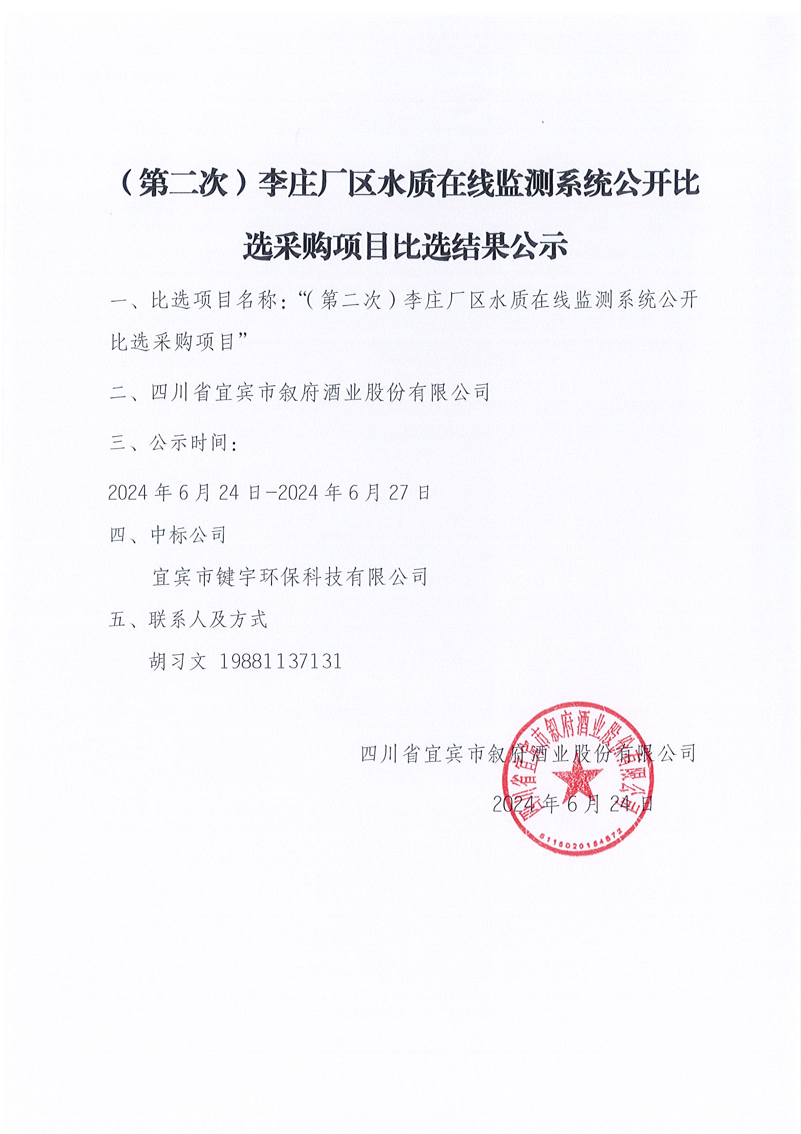 四川省敘府酒業(yè)銷售有限公司敘府大曲(藍(lán)標(biāo))產(chǎn)品TVC的創(chuàng)作與拍攝采購項(xiàng)目中標(biāo)結(jié)果公示公告