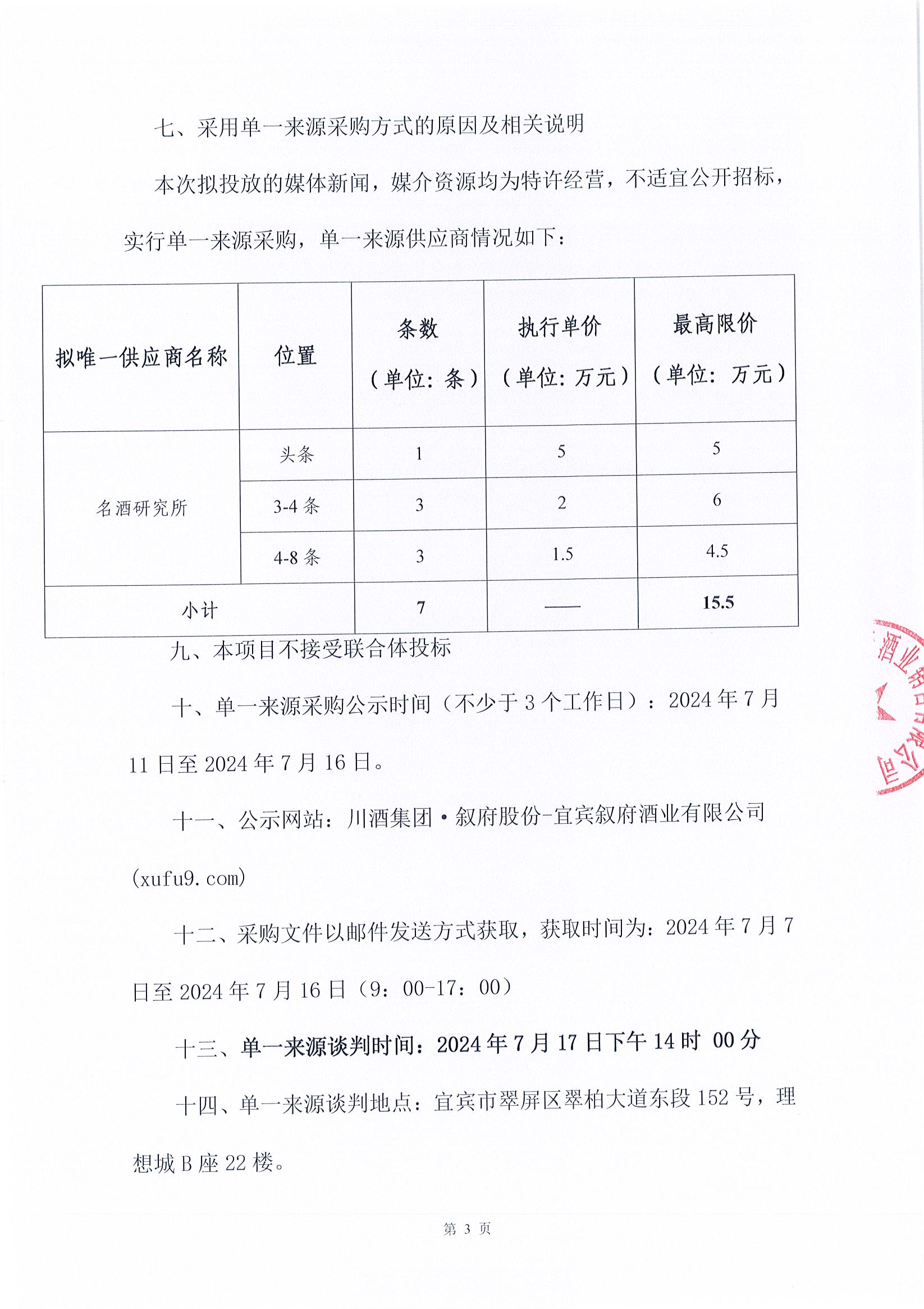 四川省敘府酒業(yè)銷(xiāo)售有限公司敘府大曲(藍(lán)標(biāo))產(chǎn)品TVC的創(chuàng)作與拍攝采購(gòu)項(xiàng)目中標(biāo)結(jié)果公示公告
