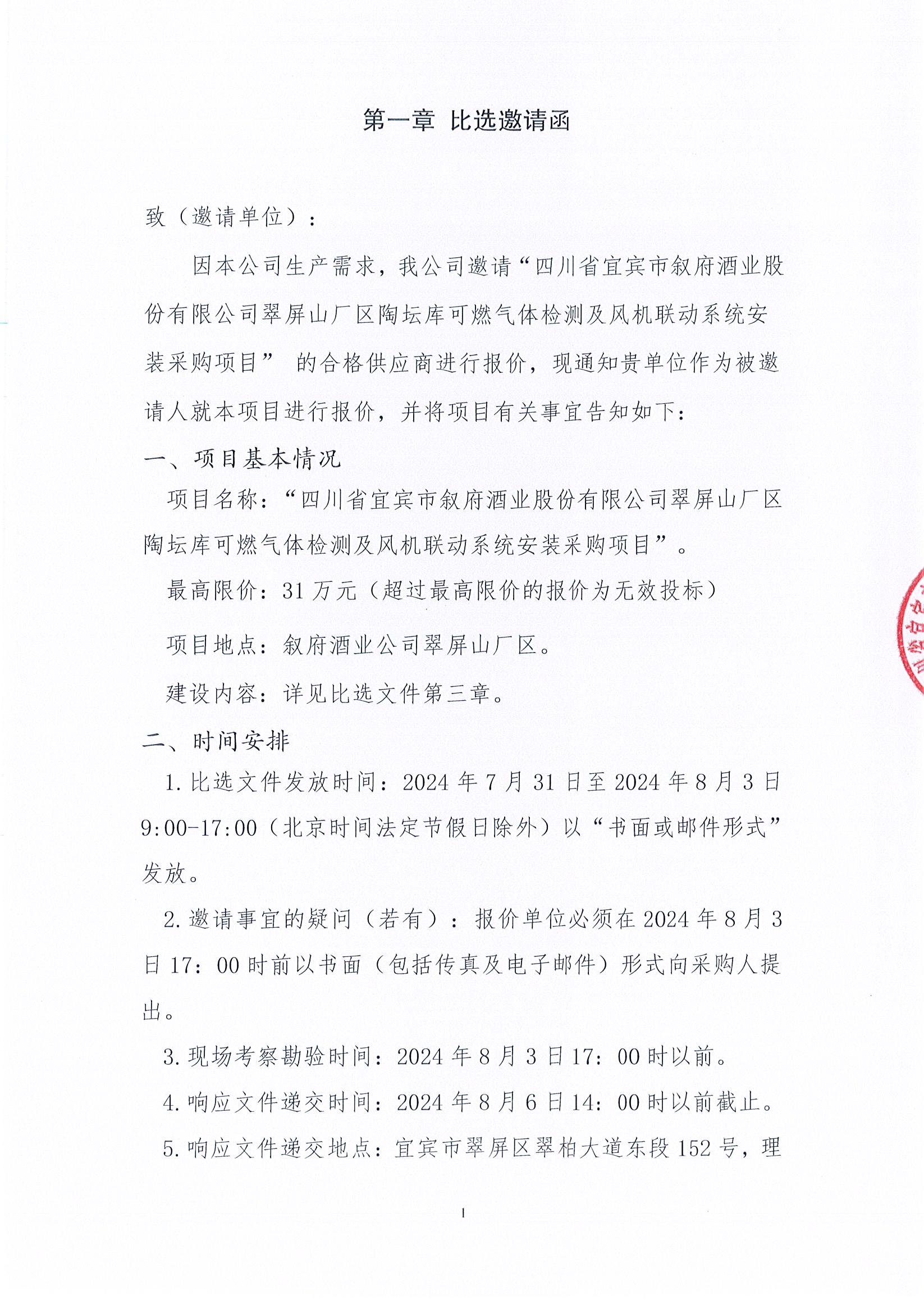 四川省宜賓市敘府酒業(yè)股份有限公司翠屏山廠區(qū)李莊廠區(qū)2024年熱季檢修項目公示公告