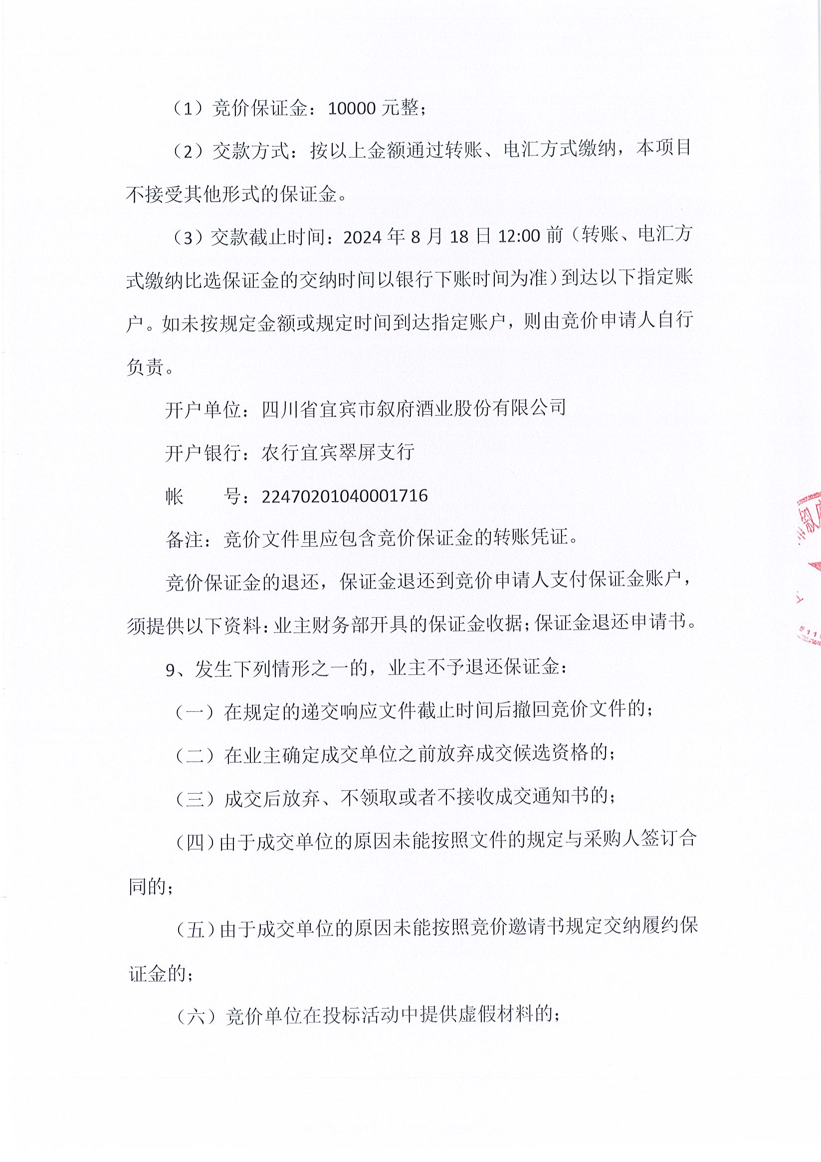 四川省宜賓市敘府酒業(yè)股份有限公司李莊遷建二期升級改造工程施工圖審查服務采購項目比選公示公告