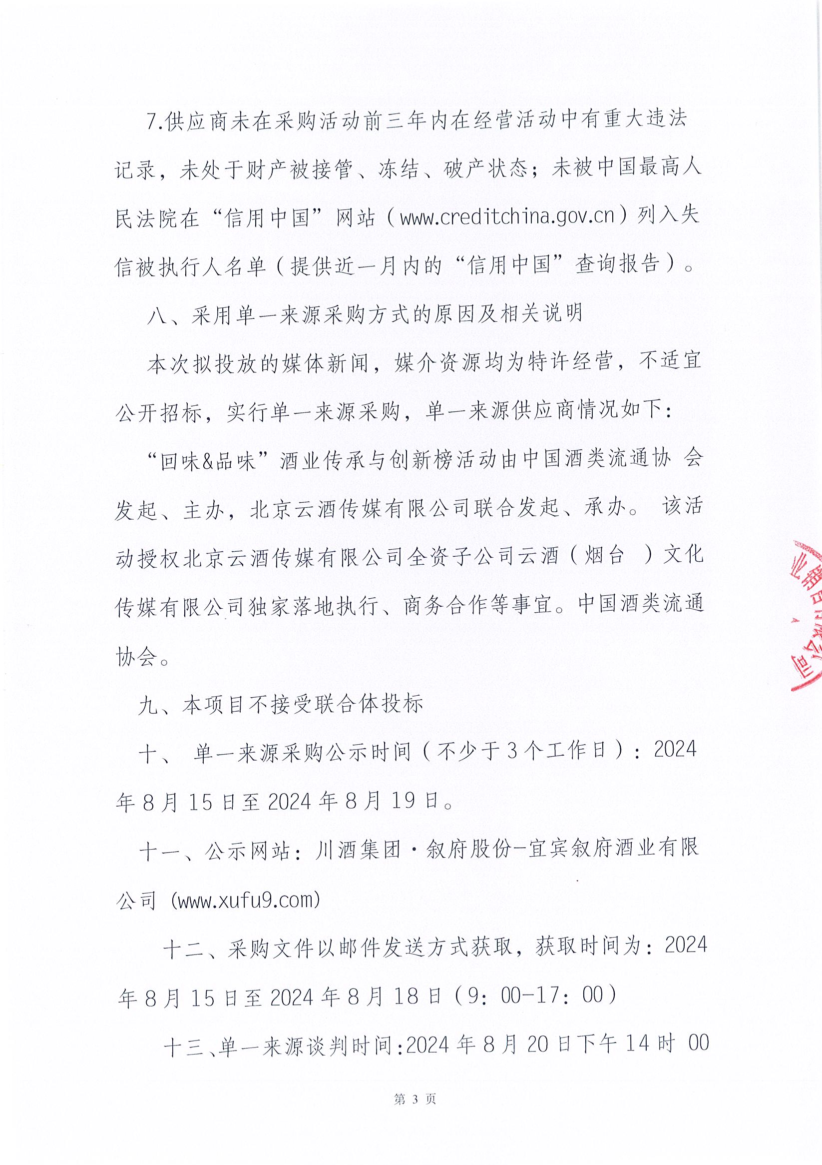 四川省敘府酒業(yè)銷售有限公司回味&品味酒業(yè)傳承與創(chuàng)新榜活動(dòng)單一來(lái)源采購(gòu)項(xiàng)目中標(biāo)結(jié)果公示公告