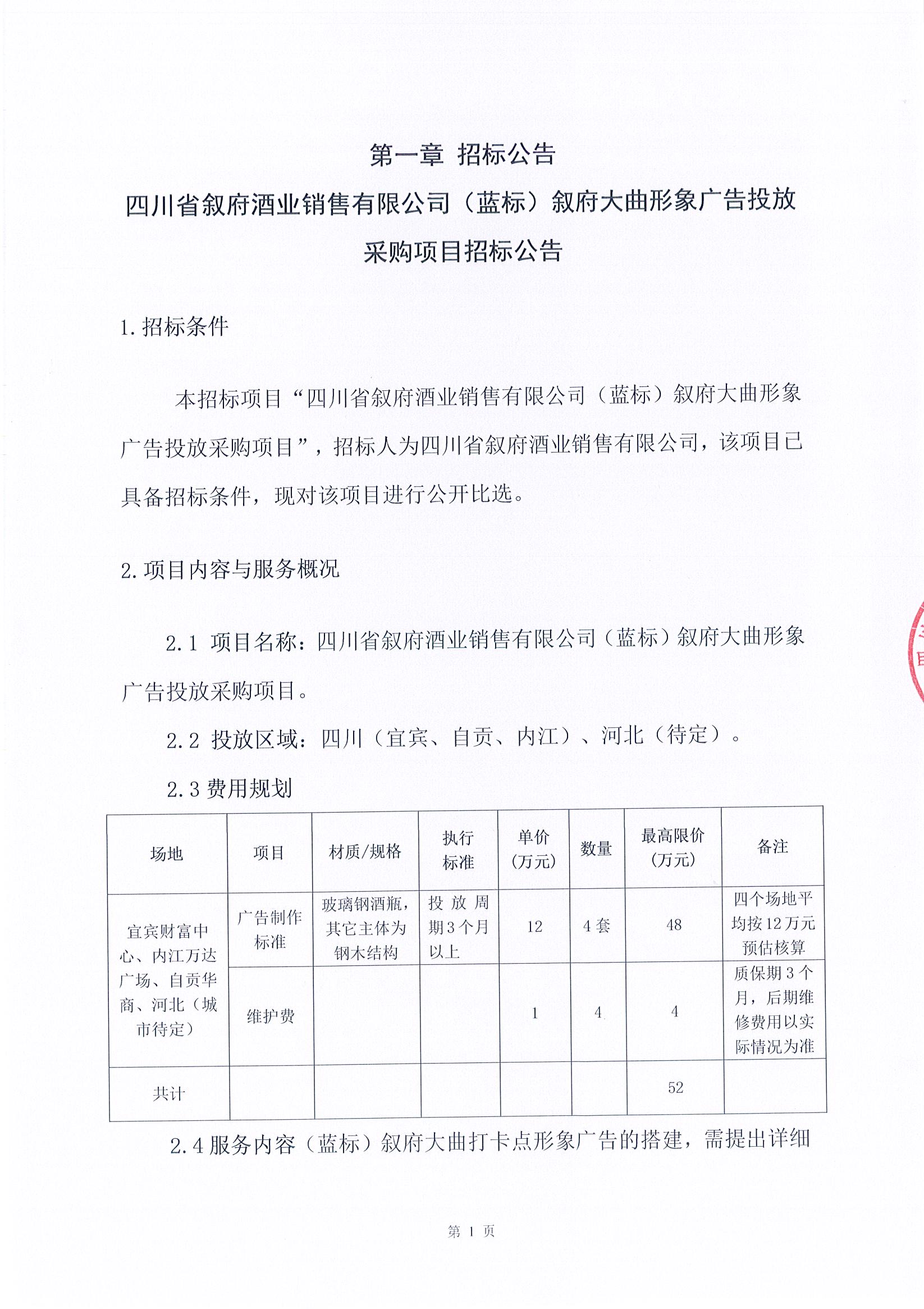 四川省敘府酒業(yè)銷售有限公司2024年敘府藍(lán)標(biāo)文化季媒體投放采購項(xiàng)目比選結(jié)果公示公告