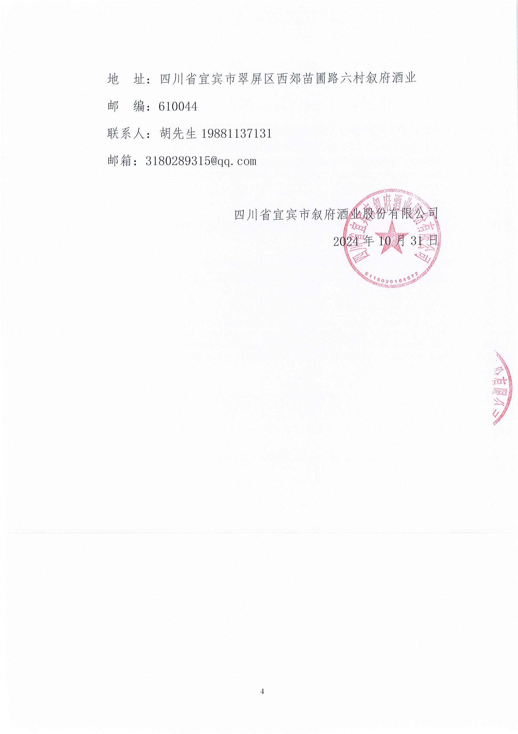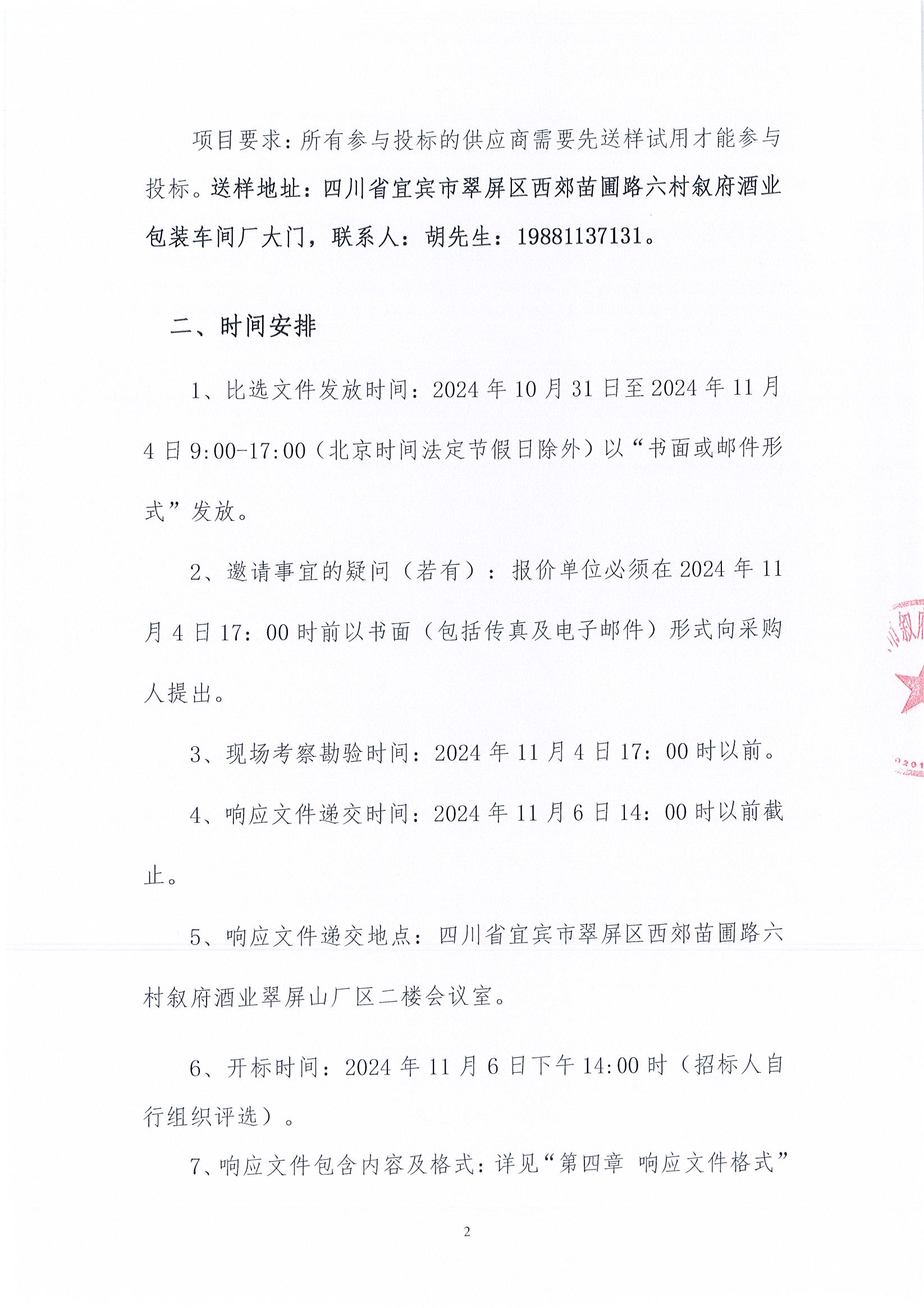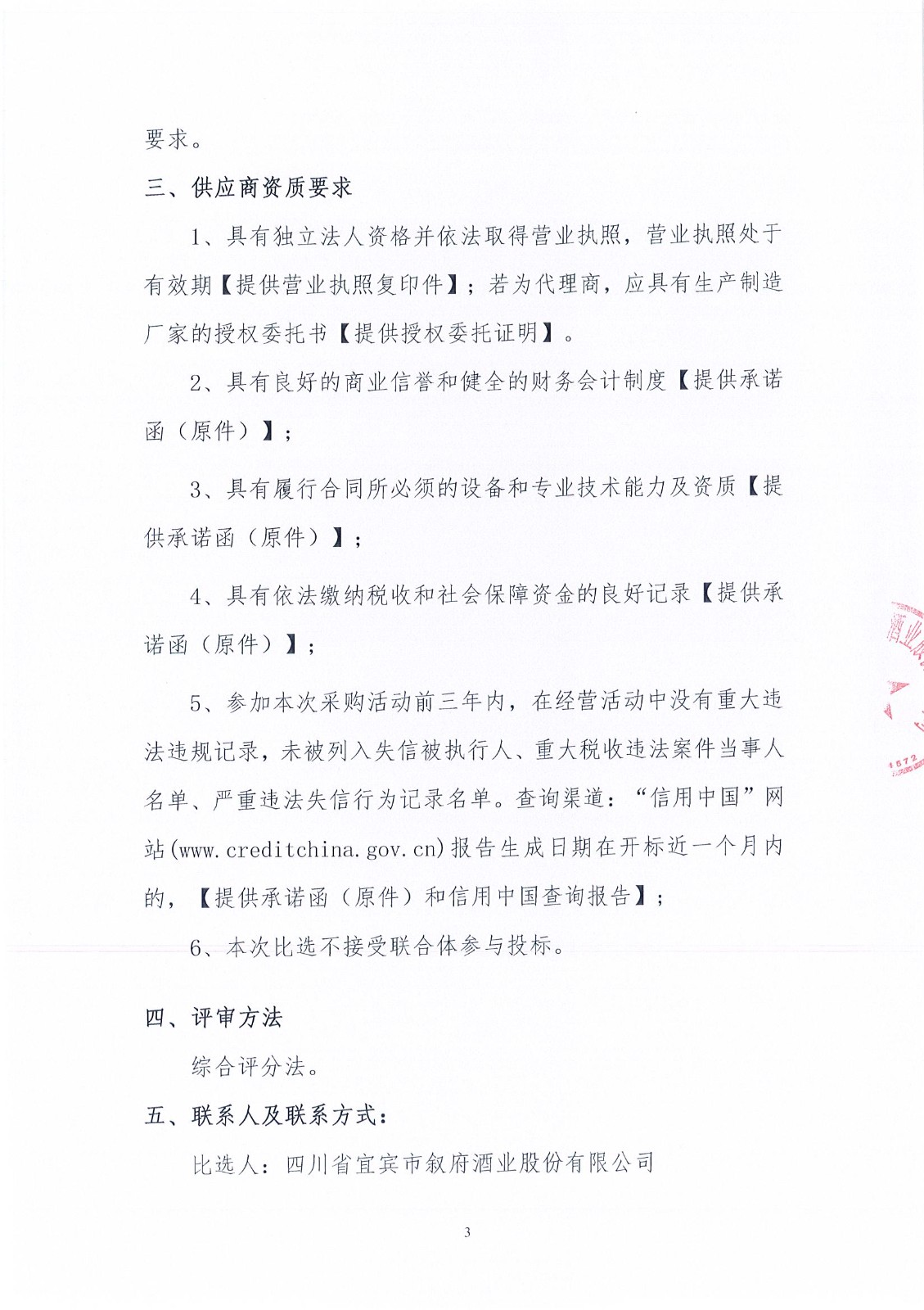 四川省宜賓市敘府酒業(yè)股份有限公司物流運(yùn)輸服務(wù)采購(gòu)項(xiàng)目比選公示公告