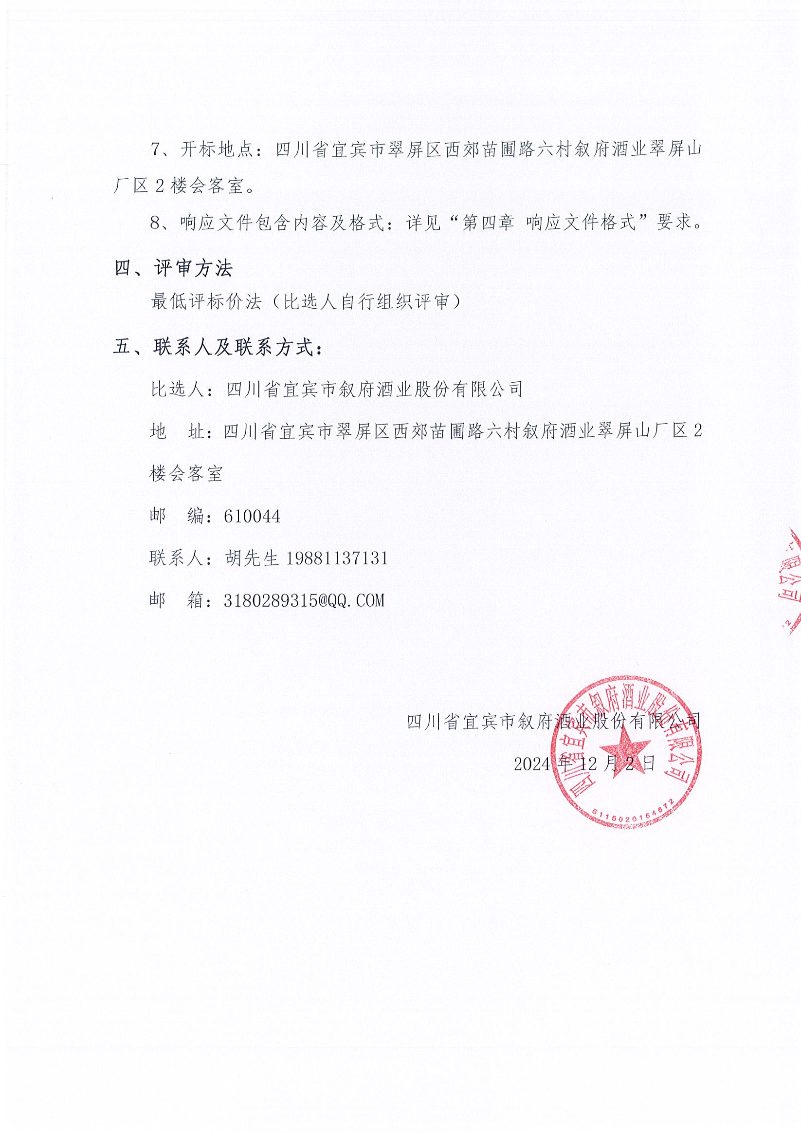 四川省宜賓市敘府酒業(yè)股份有限公司李莊廠區(qū)2024年12月-2025年12月丟糟外包出售競爭性談判項目結(jié)果公示