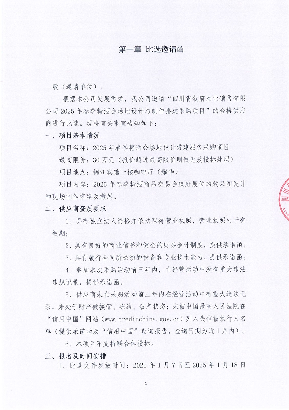 四川省敘府酒業(yè)銷售有限公司敘府純糧、陳釀及蛇年生肖紀念酒創(chuàng)作與拍攝的采購項目比選公示公告