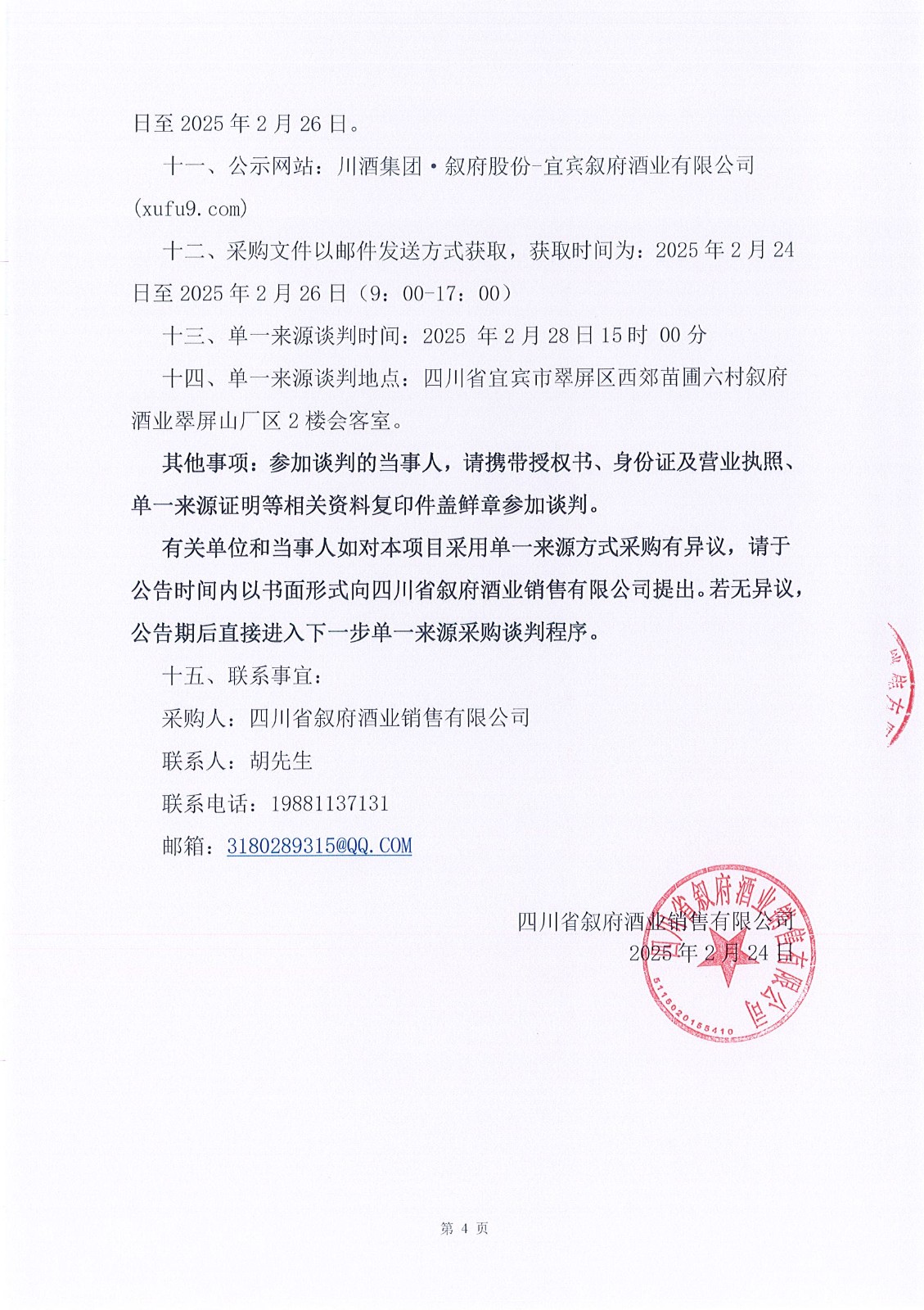 四川省敘府酒業(yè)銷售有限公司2025年度新聞媒體投放資源采購項(xiàng)目單一來源采購邀請(qǐng)書