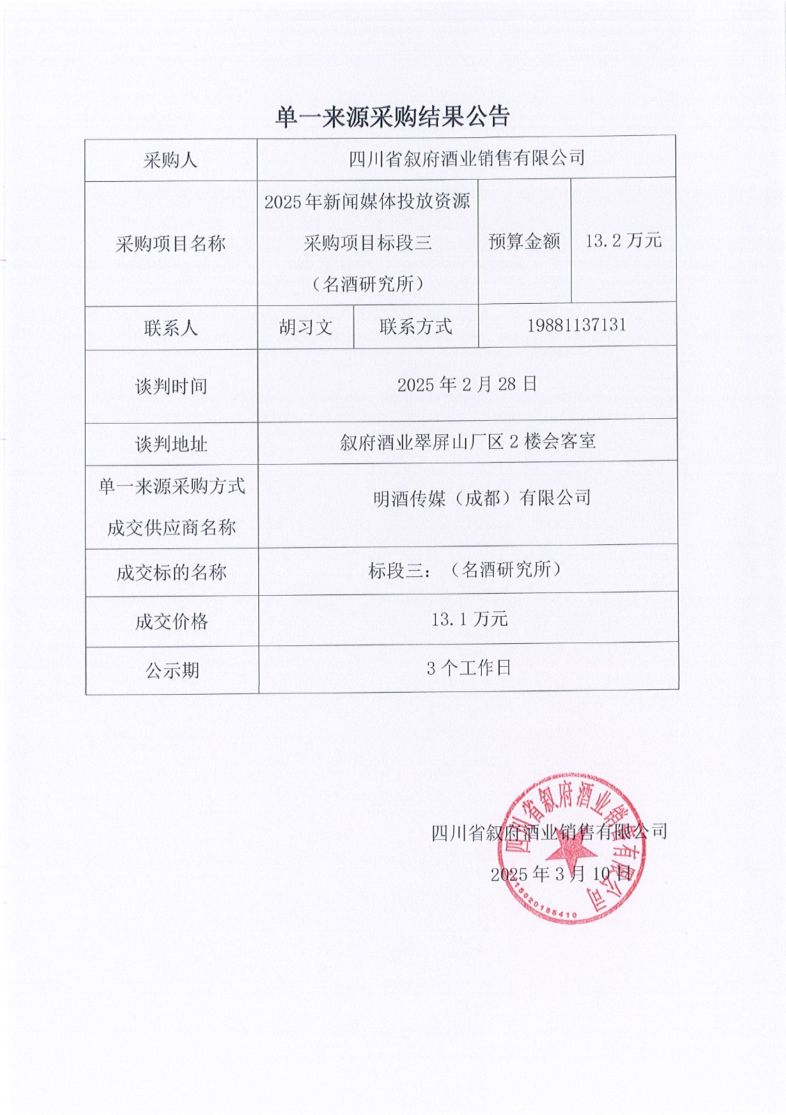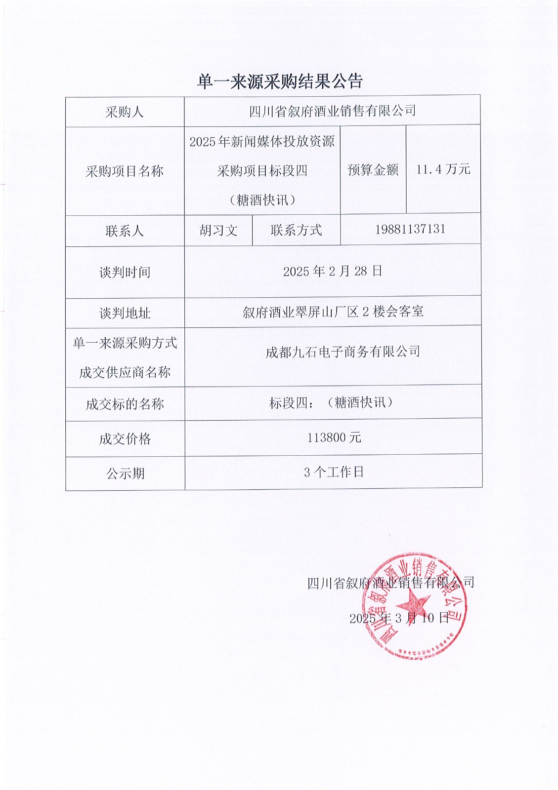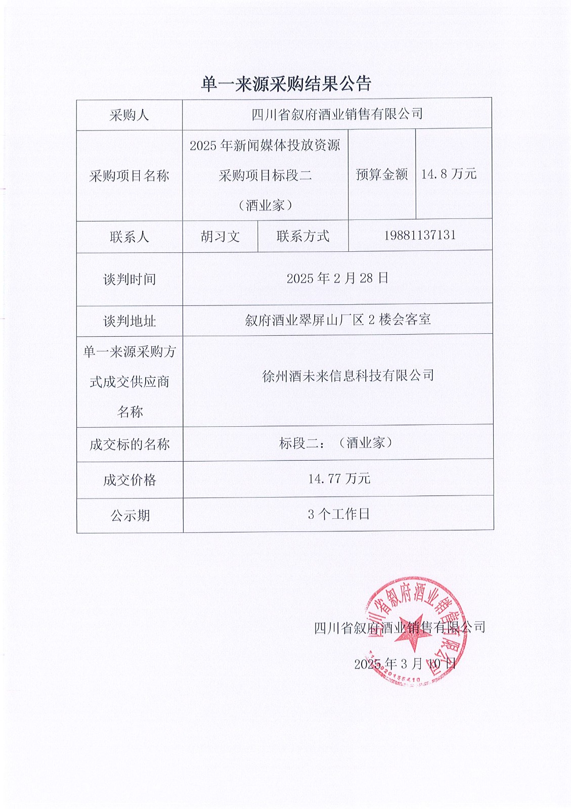 四川省敘府酒業(yè)銷售有限公司2025年春季糖酒會廣告投放采購項(xiàng)目流標(biāo)公示公告