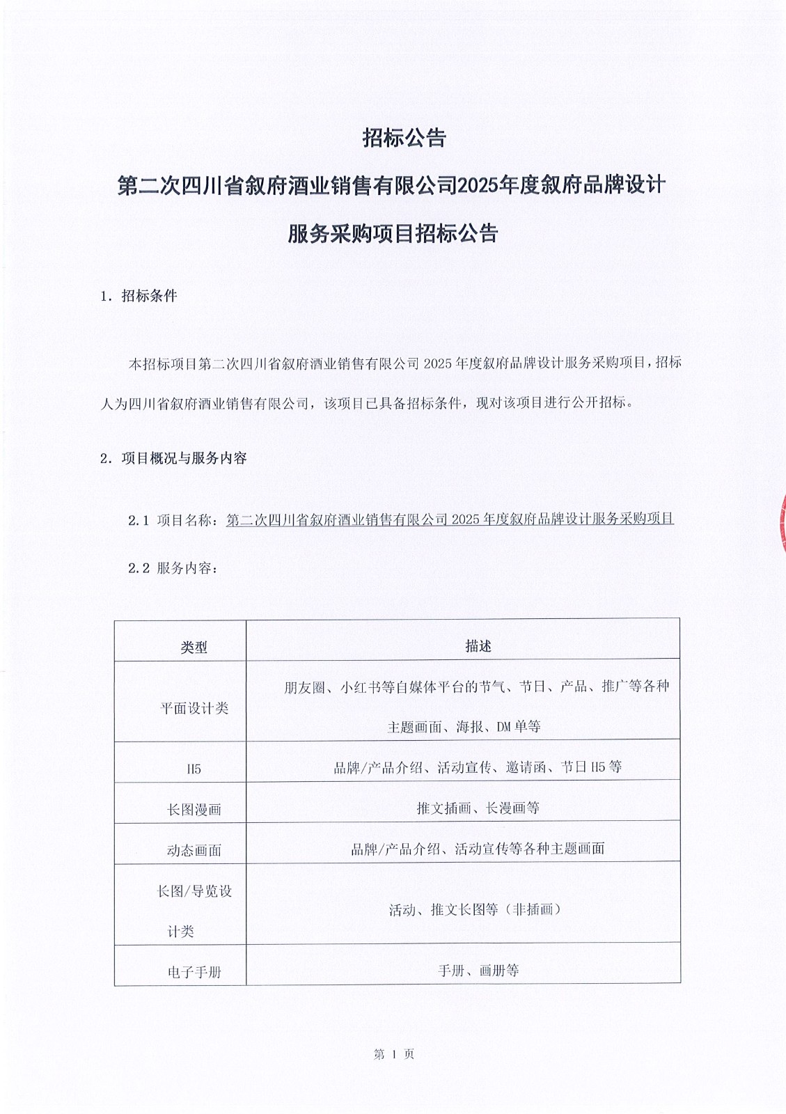 第二次四川省敘府酒業(yè)銷(xiāo)售有限公司成都營(yíng)銷(xiāo)中心升級(jí)改造服務(wù)采購(gòu)項(xiàng)目公開(kāi)比選招標(biāo)公告