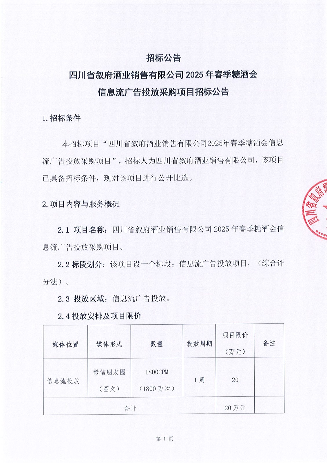 第二次四川省敘府酒業(yè)銷售有限公司2025年度敘府品牌設計服務采購項目招標公告