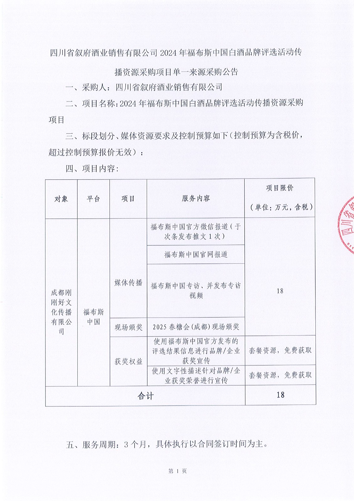 四川省敘府酒業(yè)銷(xiāo)售有限公司敘府大曲(藍(lán)標(biāo))產(chǎn)品TVC的創(chuàng)作與拍攝采購(gòu)項(xiàng)目中標(biāo)結(jié)果公示公告