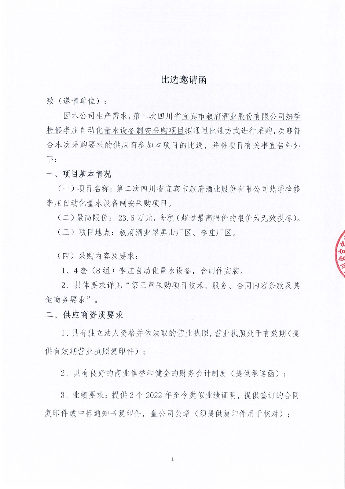 四川省敘府酒業(yè)銷售有限公司重點市場公益活動策劃執(zhí)行服務(wù)采購項目比選結(jié)果公示公告