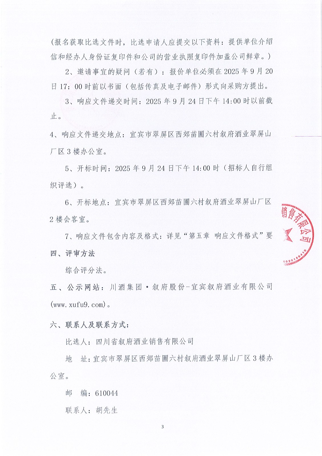 四川省宜賓市敘府酒業(yè)股份有限公司草簾采購項目比選結(jié)果公示