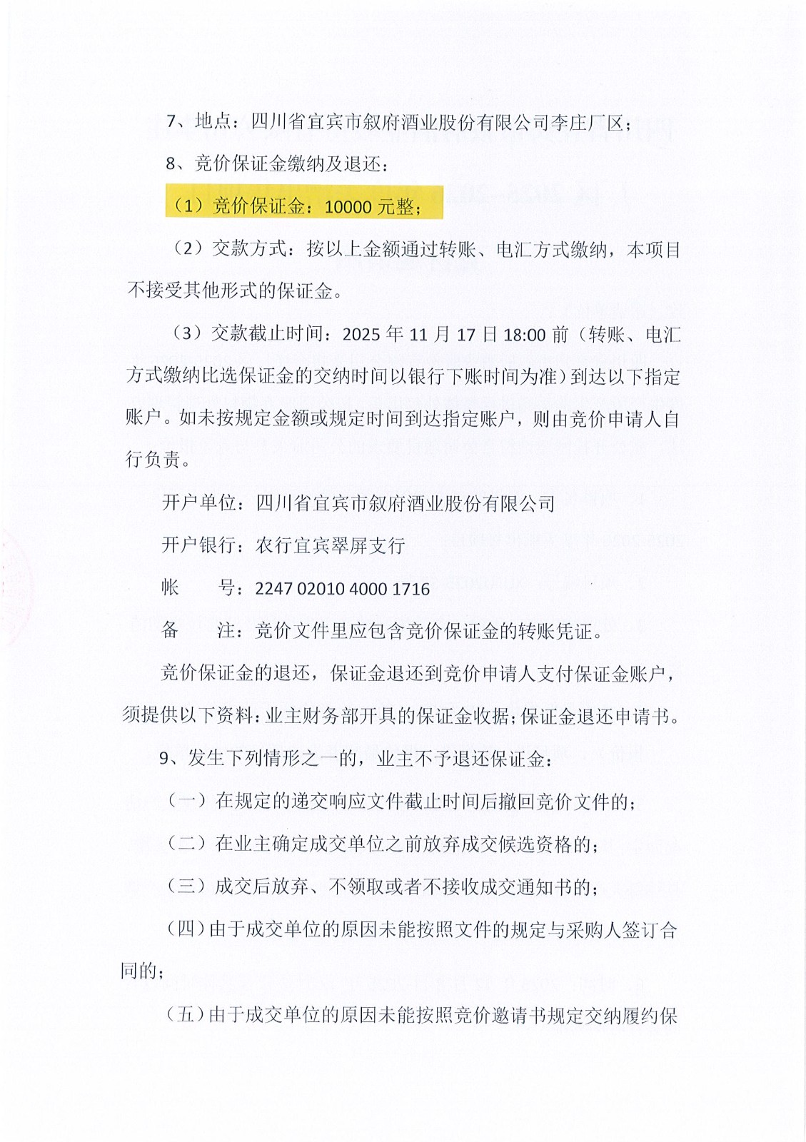 四川省宜賓市敘府酒業(yè)股份有限公司李莊廠區(qū)2025-2026年度丟糟出售項目競價結果公示公告