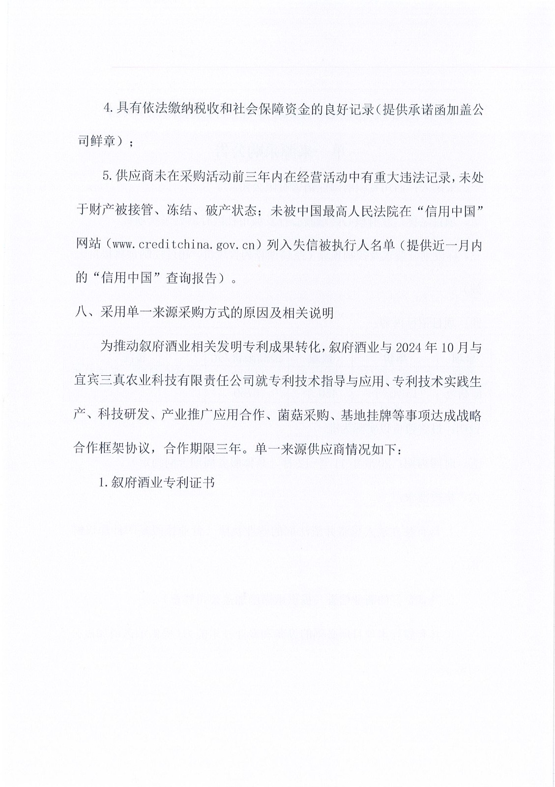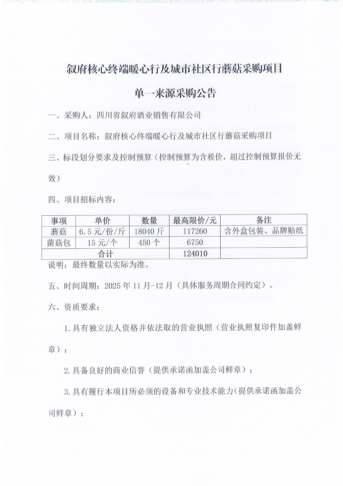 四川省敘府酒業(yè)銷售有限公司敘府核心終端暖心行及城市社區(qū)行、蘑菇單一來(lái)源采購(gòu)項(xiàng)目中標(biāo)結(jié)果公示公告