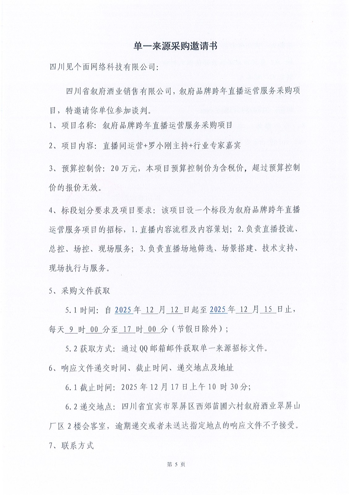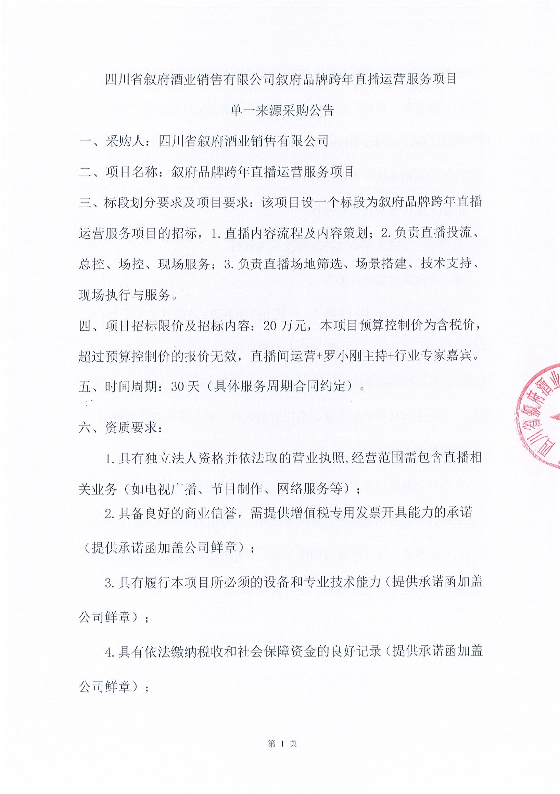 (第二次)四川省宜賓市敘府酒業(yè)股份有限公司李莊基地外接電競爭談判采購項目比選招標(biāo)公告