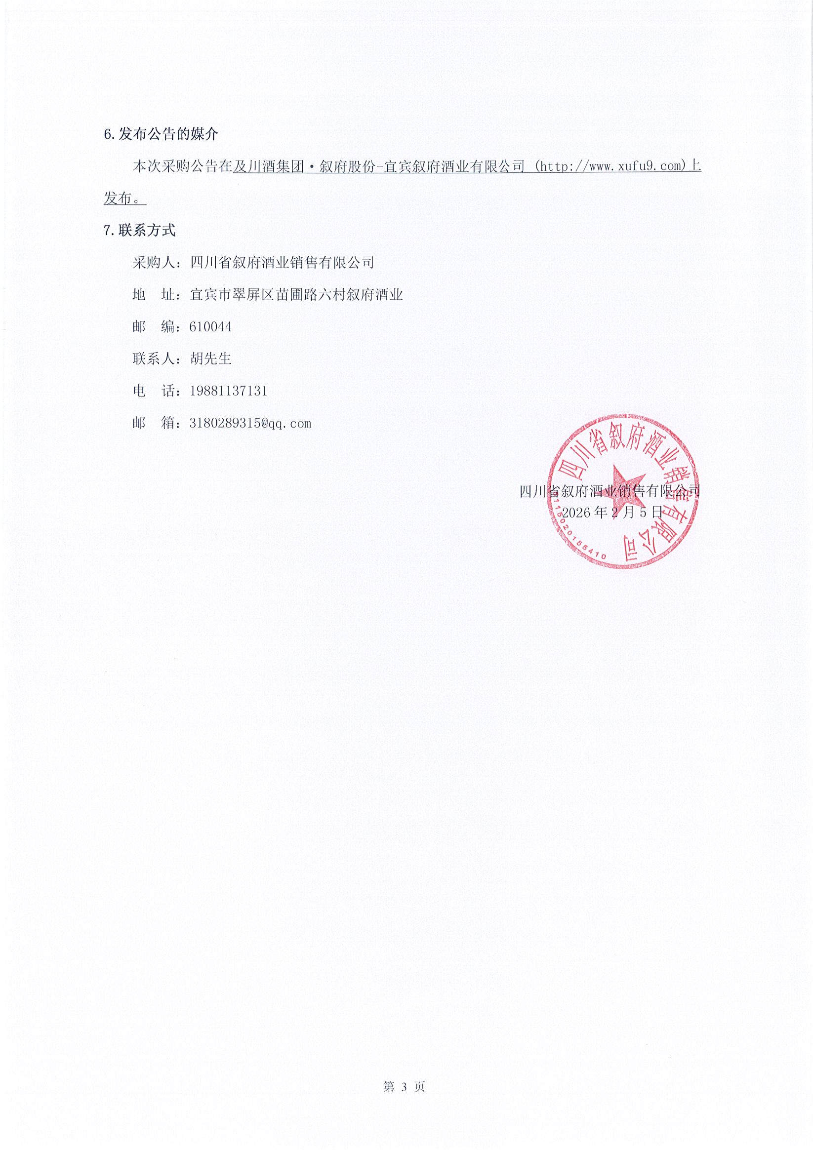 四川省宜賓市敘府酒業(yè)股份有限公司物流運(yùn)輸服務(wù)采購項(xiàng)目比選結(jié)果公示公告