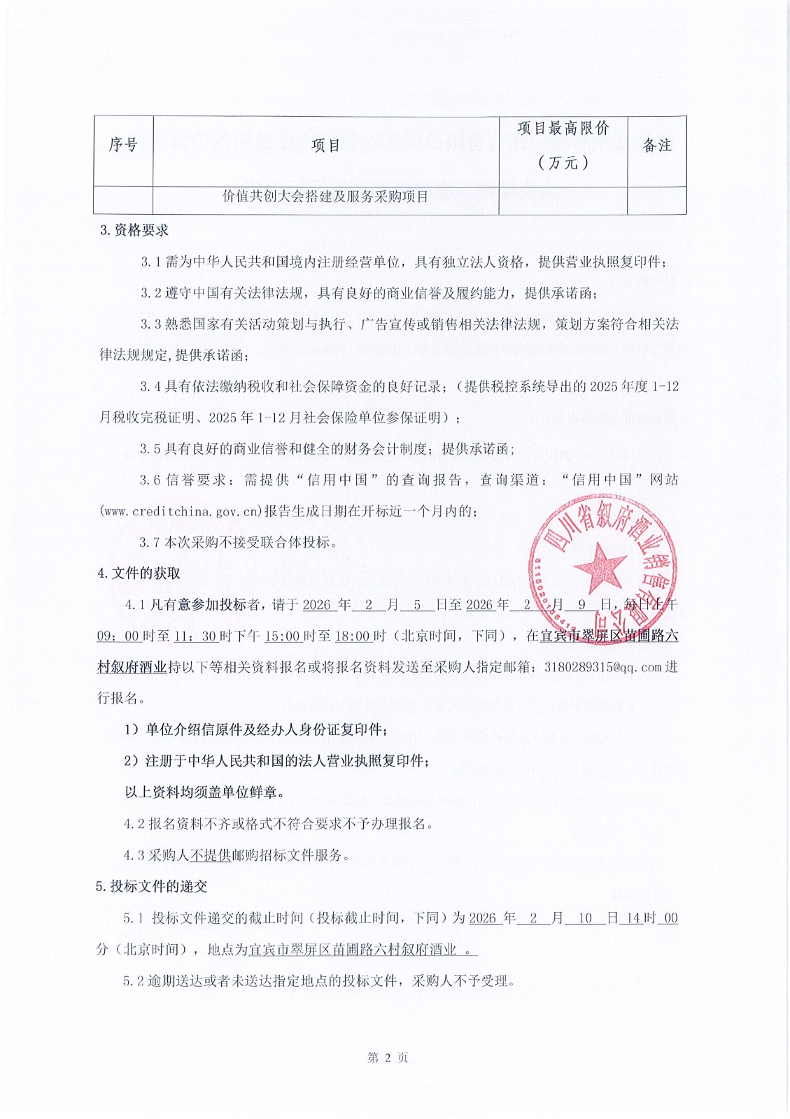 四川省宜賓市敘府酒業(yè)股份有限公司電動四輪車競爭談判采購項(xiàng)目